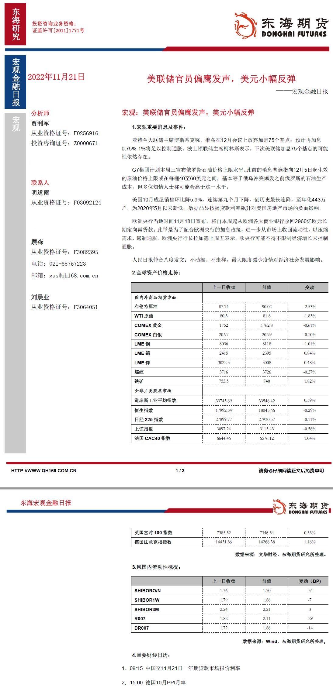 重要财经日历:1、09:15 中国至11月21日一年期贷款市场报价利率2、15:00 德国10月PPI月率免责声明:本报告立足于结合基本面及技术面对市场价格运行趋势及轮廓进行整体判断,提示可能存在的投...