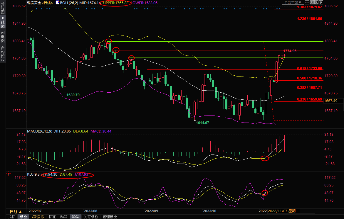 周二(11月15日),国际金价再度刷新三个月高位至1776.40美元/盎司附近,受美联储激进加息政策松动预期支撑。美元指数距离上周创下的近三个月低位106.28不远。北京时间15:23,现货黄金上涨0...