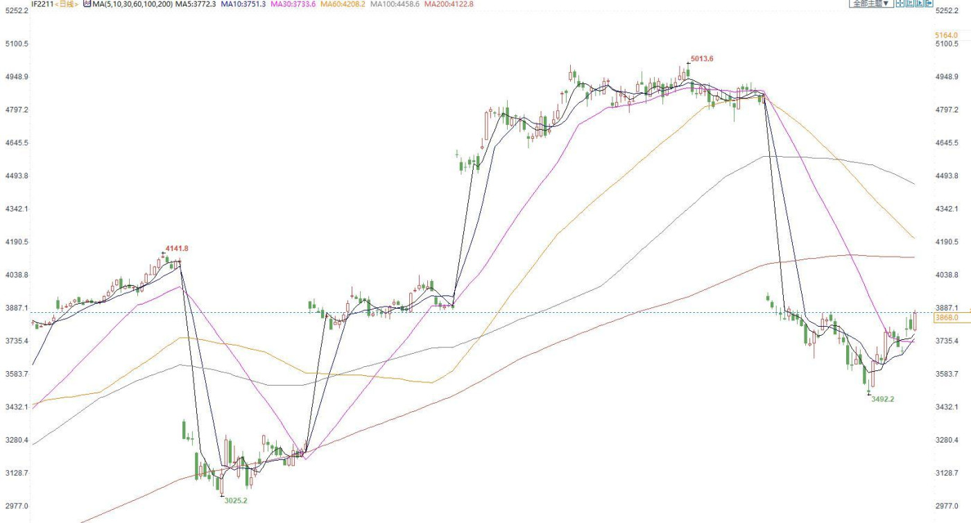 股指期货:上证综指突破3100点,量能连续3个交易日保持万亿之上 【今日涨跌】四大期指全线收涨。IH2211收盘价为2585,收涨1.75%;IF2211收盘价为3868,收涨1.85%;IC2211...