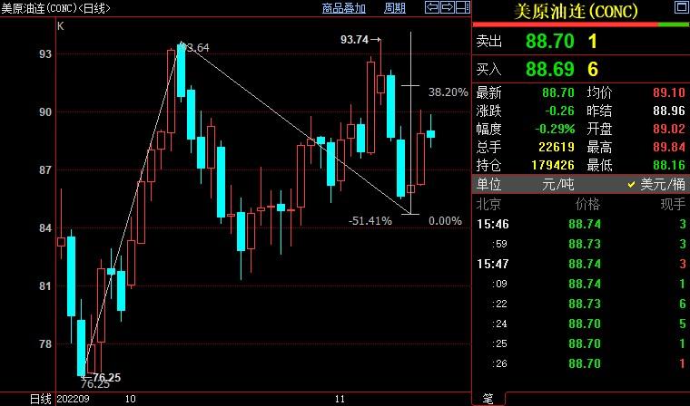 周一(11月14日)亚洲时段,美原油震荡微跌,目前交投于88.45美元/桶附近,虽然周末亚洲大国优化防疫措施的消息一度给油价提供支撑,但美联储理事的鹰派讲话,加剧了市场预期对全球经济衰退的担忧,亚洲股...
