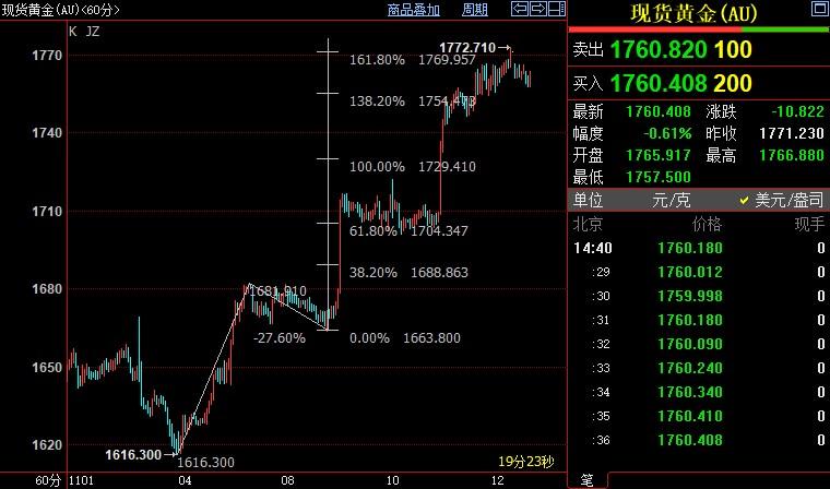 周一(11月14日),国际金价回落,脱离上个交易日触及的三个月高位1772.55美元/盎司,因此前有美联储高级官员警告称,其并未软化抗通胀努力,美元和美债收益率小幅走高。但金市技术面依然看涨,后市上看...