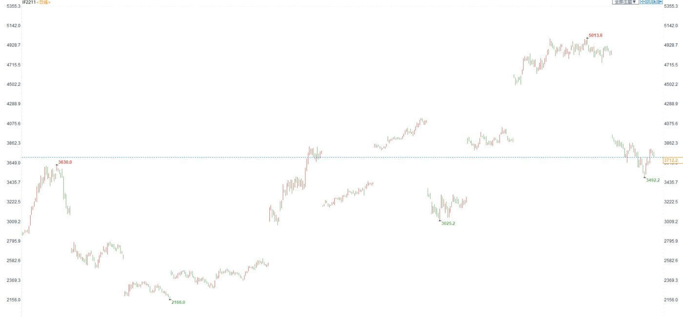 股指期货:市场缩量回调,延续筑底震荡 【今日涨跌】四大期指全线收跌。IH2211收盘价为2438.2,收跌0.92%;IF2211收盘价为3712.2,收跌1.18%;IC2211收盘价为6123.2...