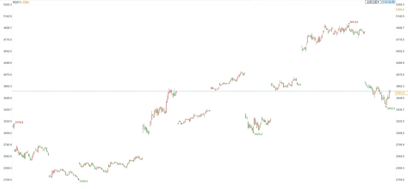 股指期货:市场窄幅震荡,量能继续保持万亿 【今日行情】四大期指涨跌弧线。IH2211收盘价为2476.6,收涨0.22%;IF2211收盘价为3781.8,收涨0.02%;IC2211收盘价为6136...