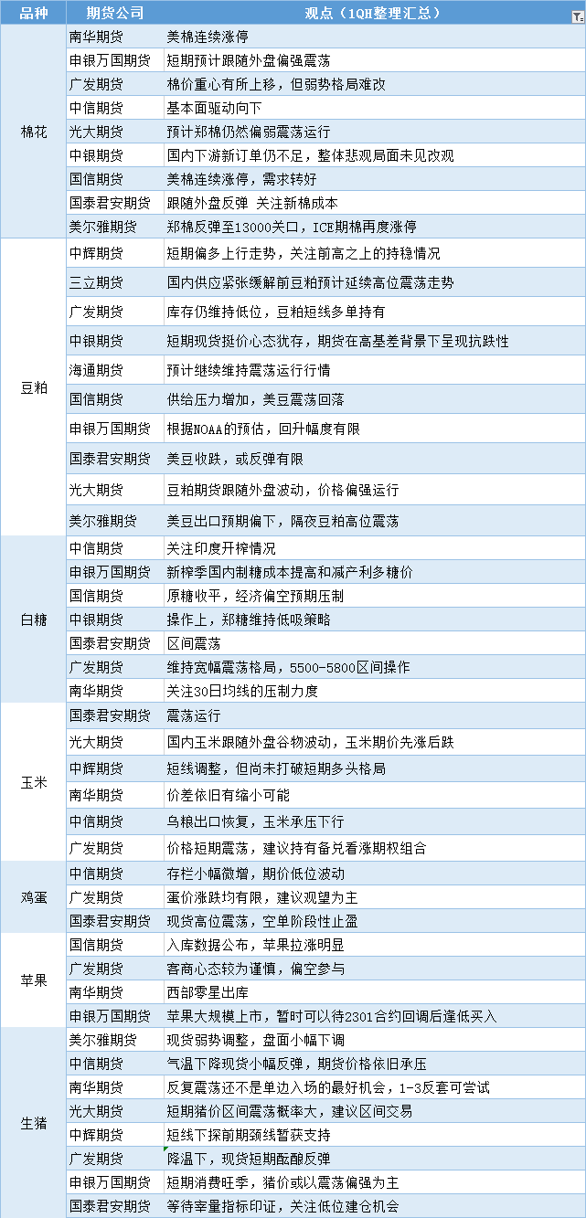 期货公司观点汇总一张图:11月4日农产品(棉花、豆粕、白糖、玉米、鸡蛋、生猪等)