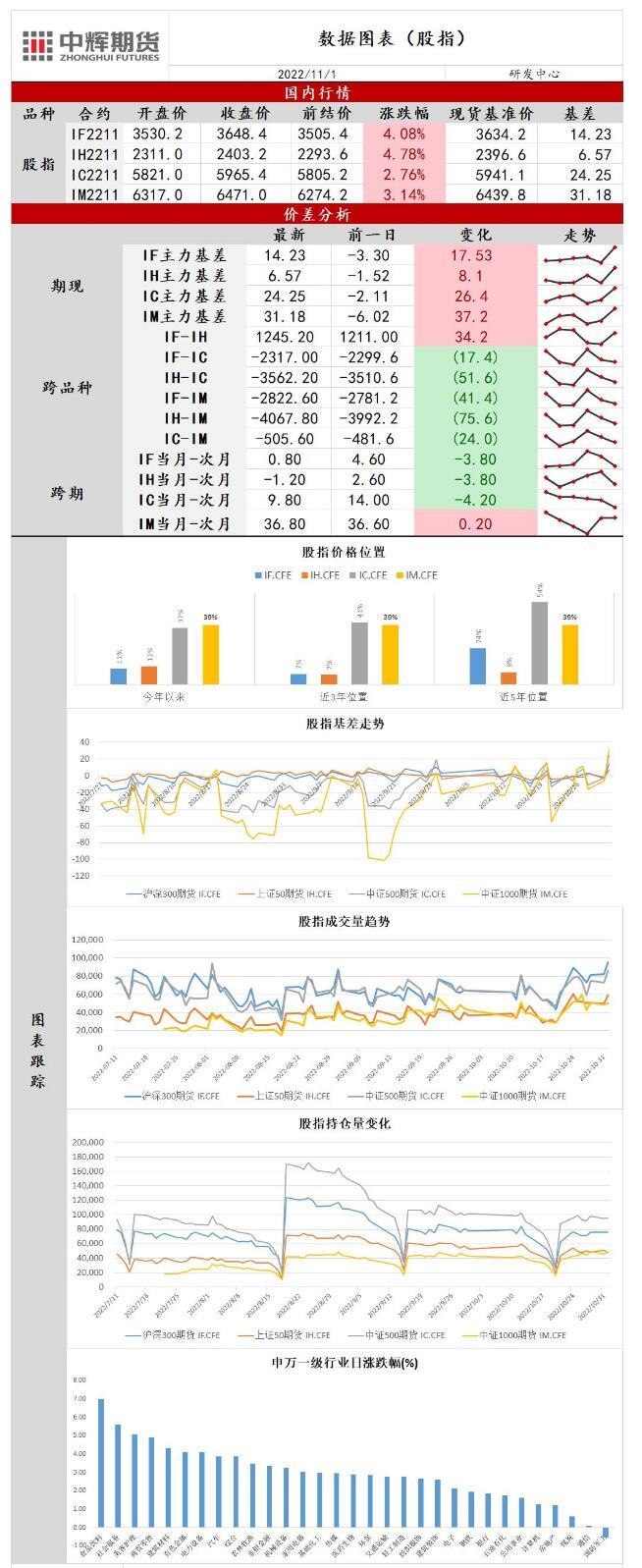 股指:两市赚钱效应极好,指数全线上涨截止11月1日周二收盘,上证指数涨2.62%,报2969.20,深证成指涨3.24%,报10734.25,创业板指涨3.20%,报2337.65。基本面信息:1、据...