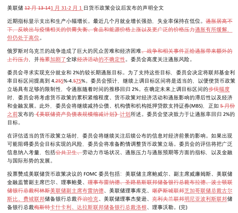 汇通财经APP讯——周三(2月1日)纽约时段盘中,北京时间周四凌晨3点,美联储公布最新的2月利率决议,美联储如期升息25基点,至4.50-4.75%,符合预期。从本次美联储决议声明上看,美联储措辞基本...