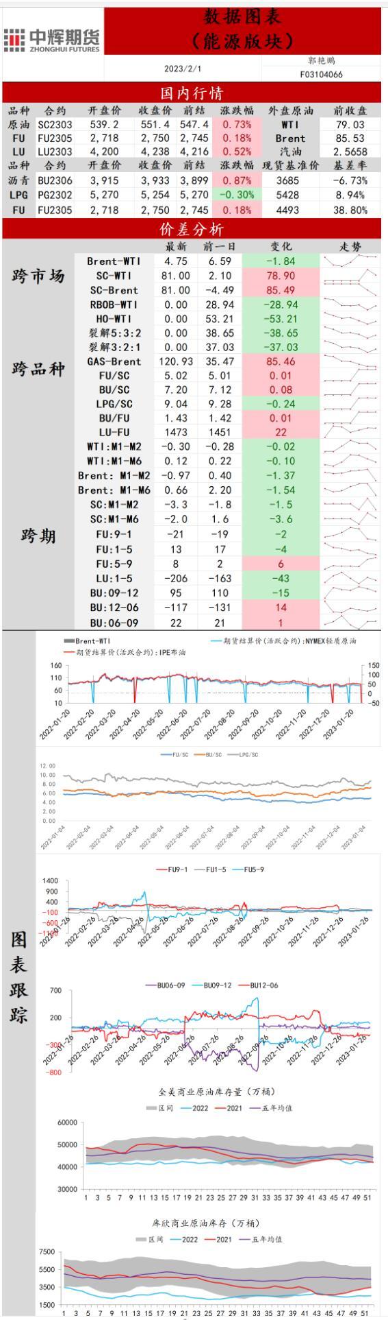 汇通财经APP讯——今日原油止跌反弹,国内SC原油收于551.4元/桶,涨幅为0.73%。供需:1、美国石油协会(API)数据显示,截止1月27日当周,原油库存增加约630万桶,汽油库存增加约270万...
