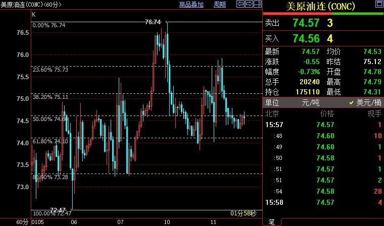 汇通财经APP讯——周三(1月11日),国际油价下跌,因全球最大石油消费国美国的原油和燃料库存意外增加,叠加业已存在的经济不确定性,再次引发需求担忧。NYMEX原油下看74.10美元。北京时间15:5...