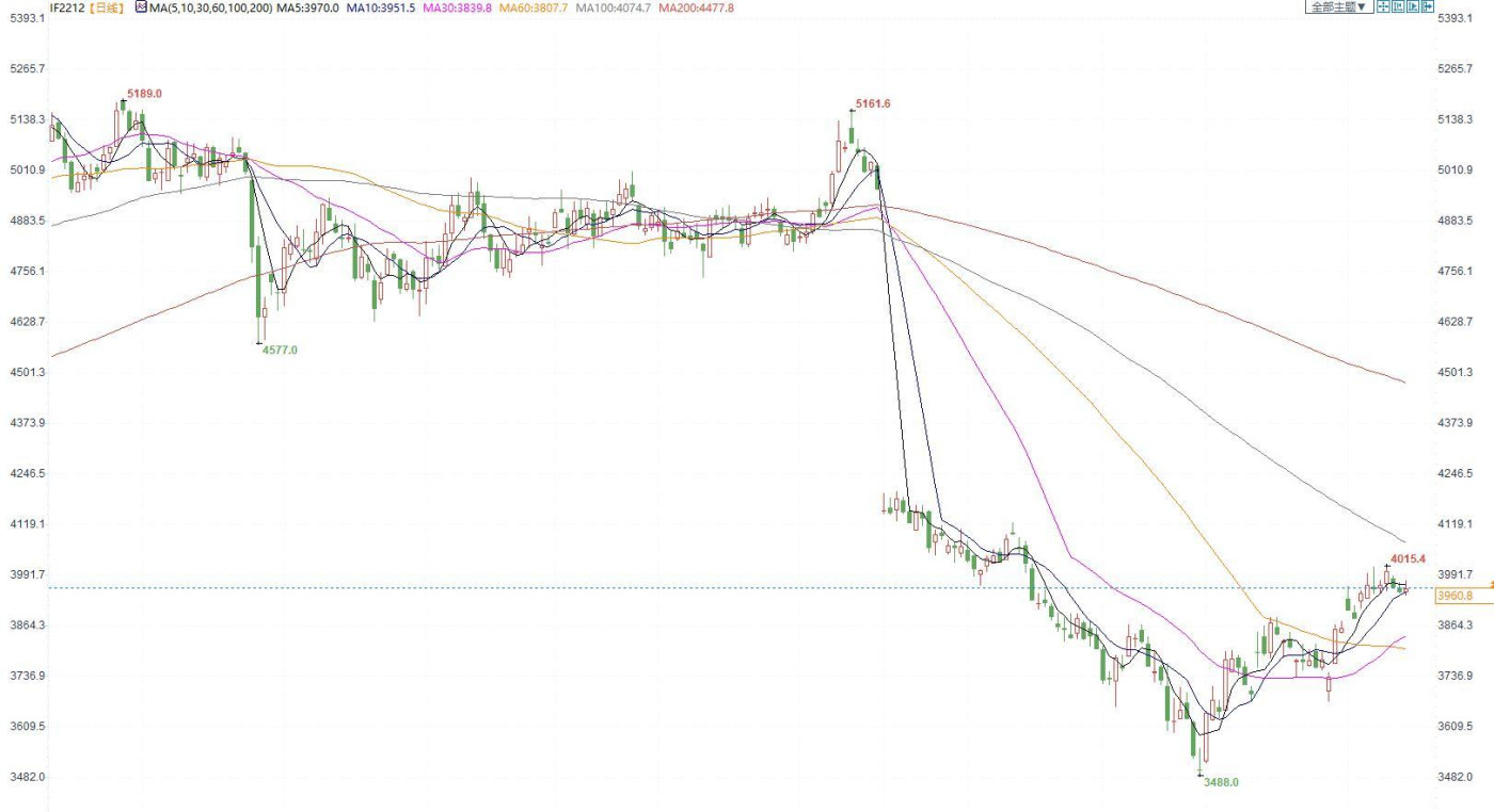 汇通财经APP讯——股指期货:市场继续回调为主,四大期指表现分化 【今日涨跌】四大期指涨跌互现。IH2212收盘价为2694.4,收涨0.48%;IF2212收盘价为3960.8,收涨0.06%;IC...
