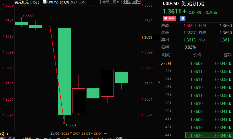 汇通财经APP讯——北京时间周三(12月7日)23点,加拿大央行如期加息50个基点至4.25%,加拿大央行“考虑”需要进一步加息以遏制通胀,但暗示明年经济停滞。截至发稿,美元兑加元跳水58个点至1.3...