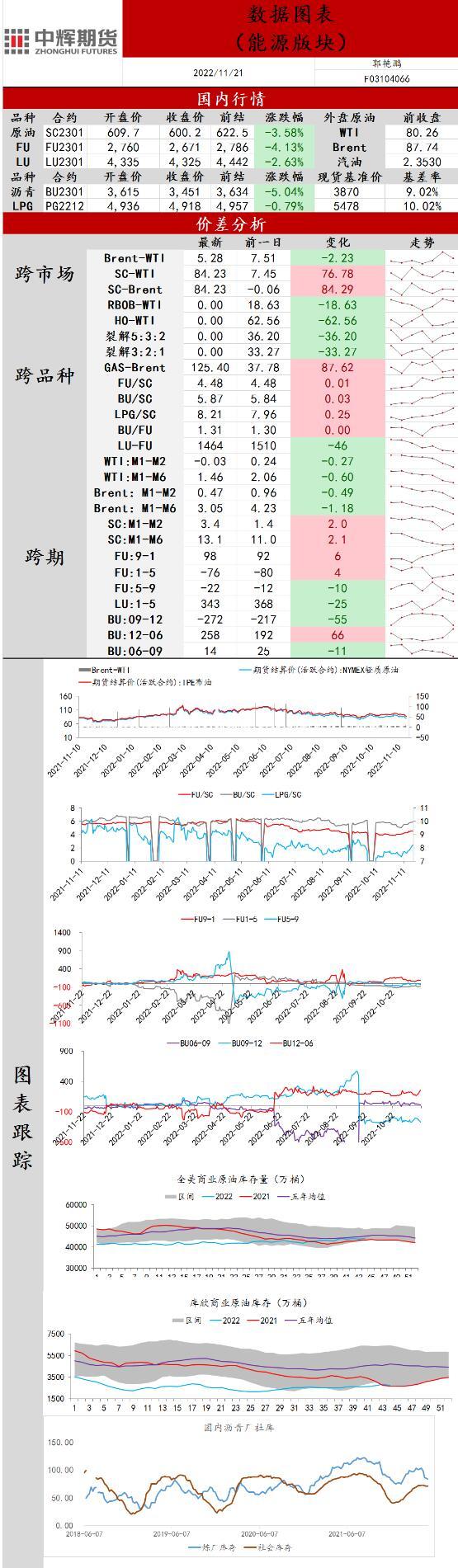 【能源化工】-原油行情解读:今日内盘原油价格收于600.2元/桶,降幅为3.58%。消息面:供需:中国10月原油进口量为4313.6万吨,同比增长14.14%,环比增加7.19%;11月18日,据美国...