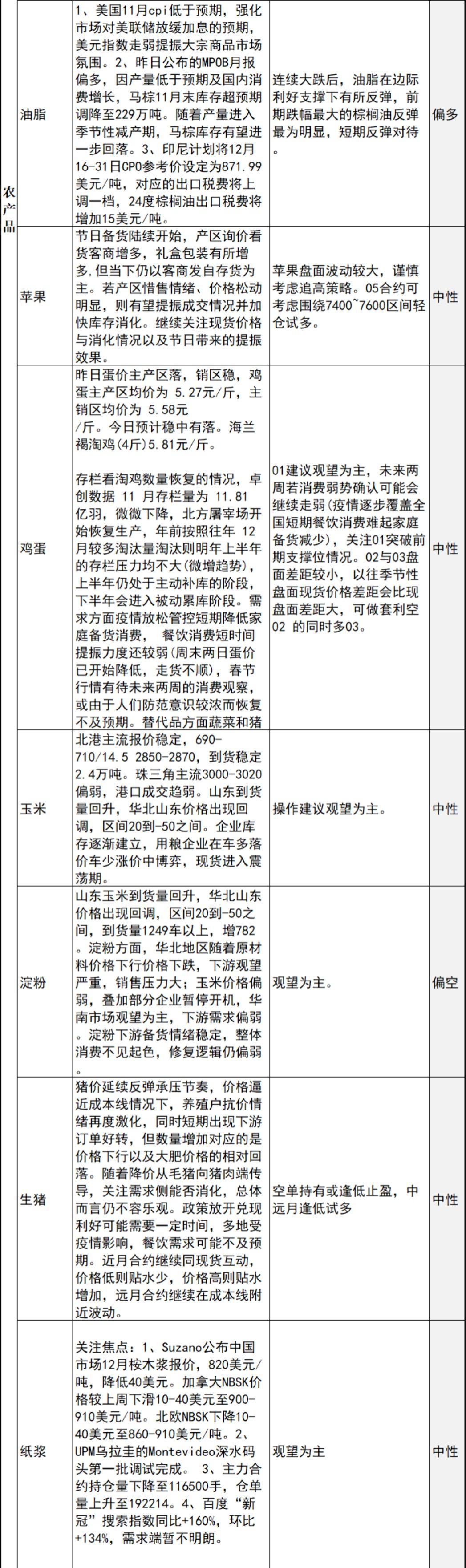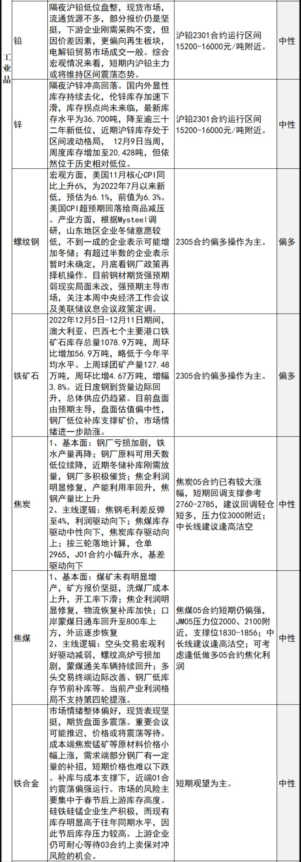 铜:临近年末,需求显现转弱迹象,基本面紧张格局一旦被扭转,后市不宜乐观。策略上,空单建议继续持有,逢高加码布局2302空单。