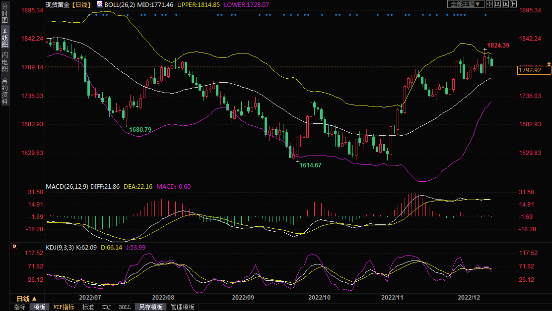 汇通财经APP讯——周四(12月15日)亚洲时段,现货黄金震荡走弱,目前交投于1793美元/盎司附近,此前美联储如期加息50个基点且暗示明年会有更多次加息,美联储主席鲍维尔也坚称即使美国经济滑向可能的衰退,美联储仍会在明年进行更多的加息。市场普遍认为美联储利率决议和鲍维尔讲话都偏向鹰派,这对金价打压明显。