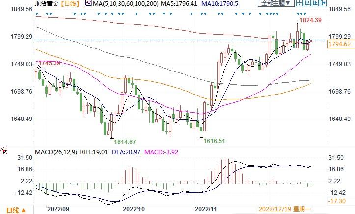 RJO期货公司高级市场策略师Frank Cholly表示:“美联储还没有推出暂停,但它正在将脚从天然气上挪开,这应该有助于金价巩固在1800美元左右。”