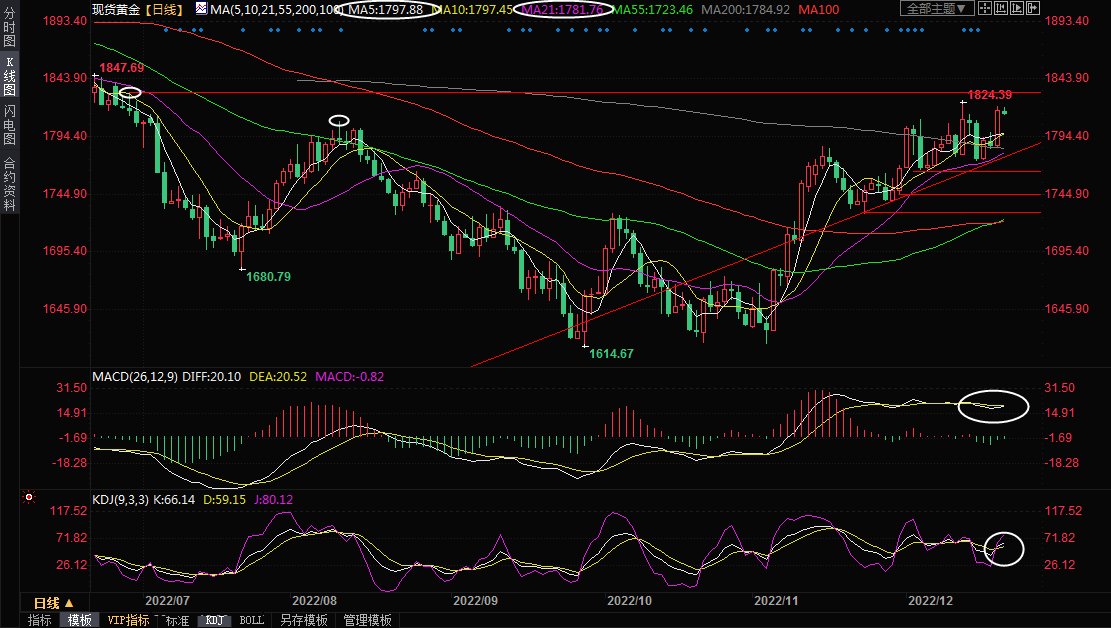 若能顶破12月13日高点1824.93附近阻力,则则有望进一步试探6月29日高点1832.96附近阻力。