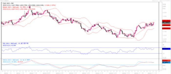 汇通财经APP讯——周二(12月20日),黄金价格大幅上涨1.64%,并大幅突破1800美元关键关口。在日本央行出人意料地调整政策后,美元下跌,这令金价受到提振,同时市场也在权衡美联储利率策略的前景。美市尾盘,现货黄金收报1817.61美元/盎司,大幅上涨30.05美元或1.68%,日内最高触及1821.05美元/盎司,最低触及1784.48美元/盎司。