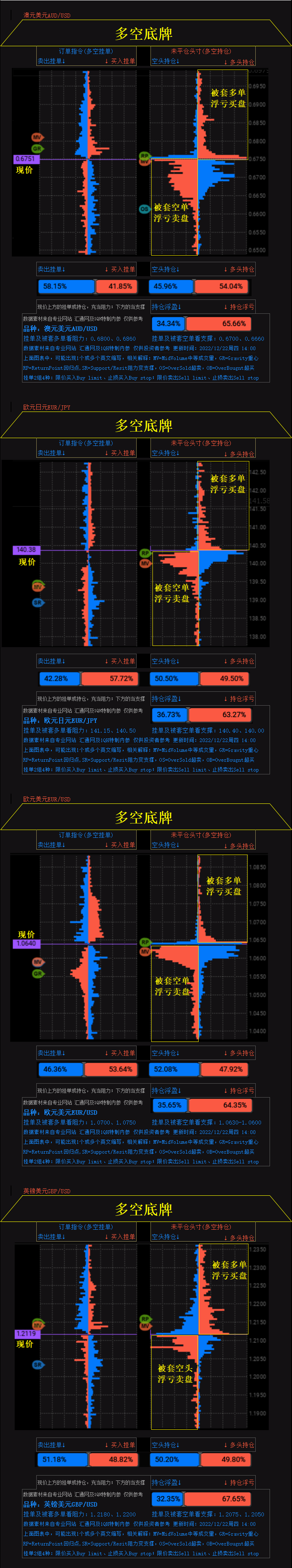 汇通财经APP讯——黄金、七大货币对的“多空底牌”一览(2022/12/22周四)。国际现货黄金挂单及被套多单看阻力:1819-1820、1833;挂单及被套空单看支撑:1816、1800。外汇货币对有:澳元美元、美元加元、美元日元、纽元美元、欧元美元、欧元日元、英镑美元。详见下图。