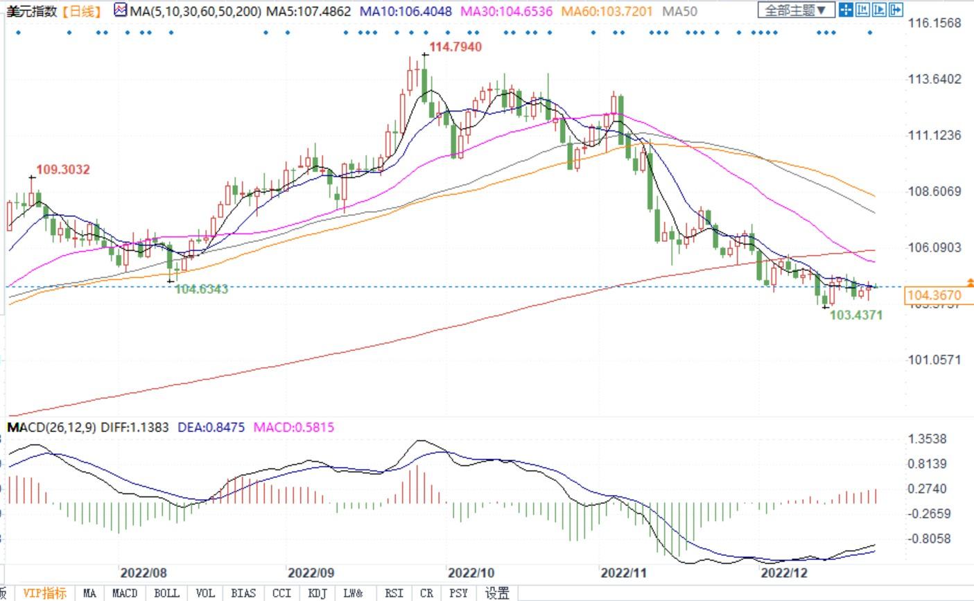 北京时间12月23日13:54,美元指数报104.36。
