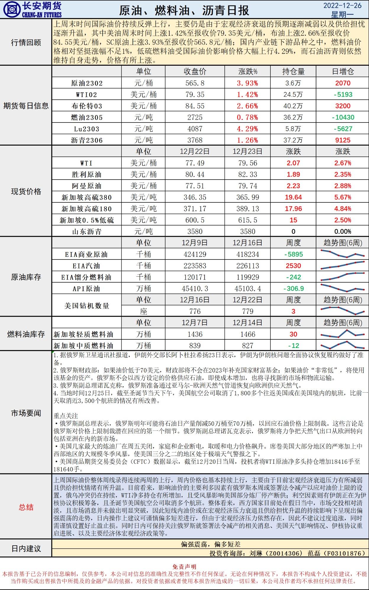 汇通财经APP讯——12月26日,长安期货发布原油早评,认为多空博弈筑底反弹,俄罗斯减产之际油价或存布多机会,认为价格将偏强震荡,建议偏多短差。
