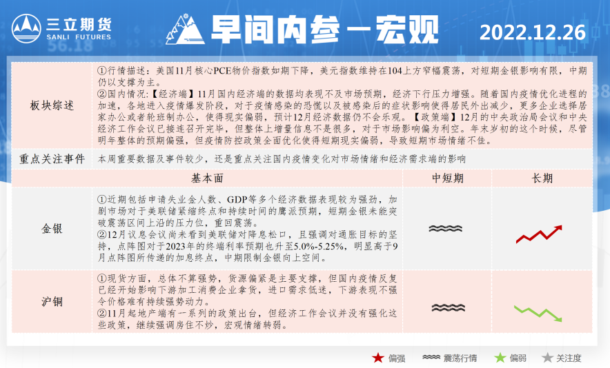 汇通财经APP讯——三立期货早间内参显示,金银中短期偏震荡,长线偏多;沪铜中短线偏向震荡,长线偏空。