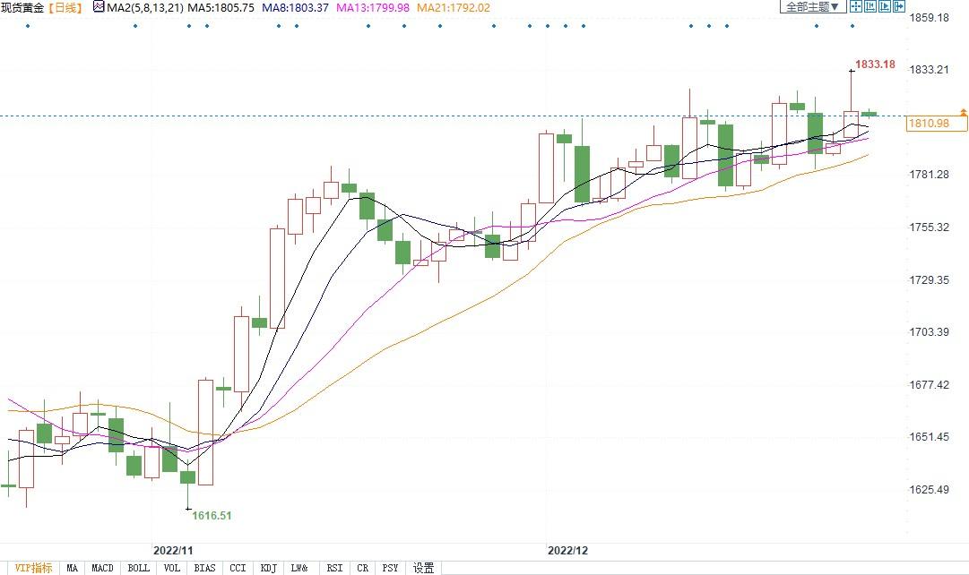 北京时间12月28日14:18,现货黄金报1810.79美元/盎司