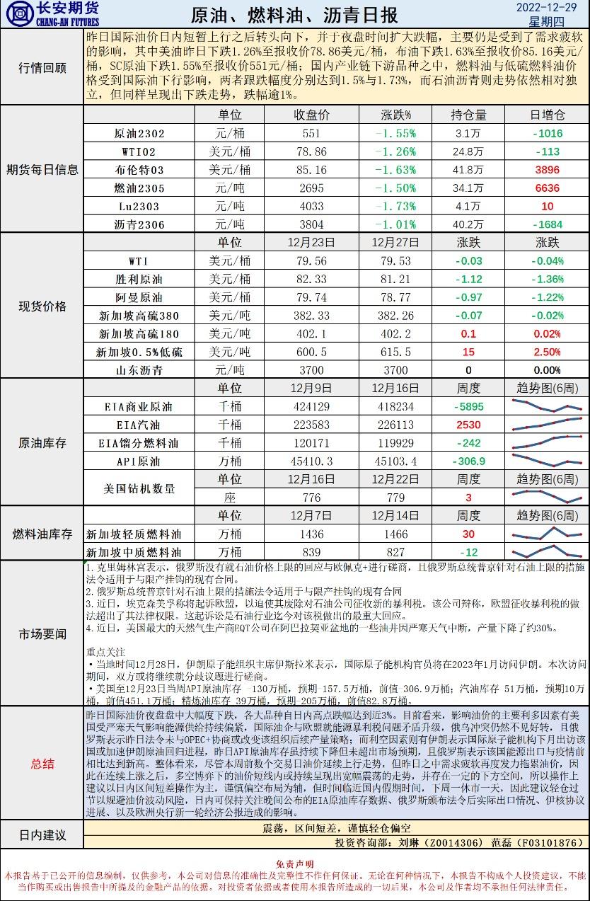 汇通财经APP讯——12月29日,长安期货发布原油早评,认为原油将震荡,建议区间短差,谨慎轻仓偏空。