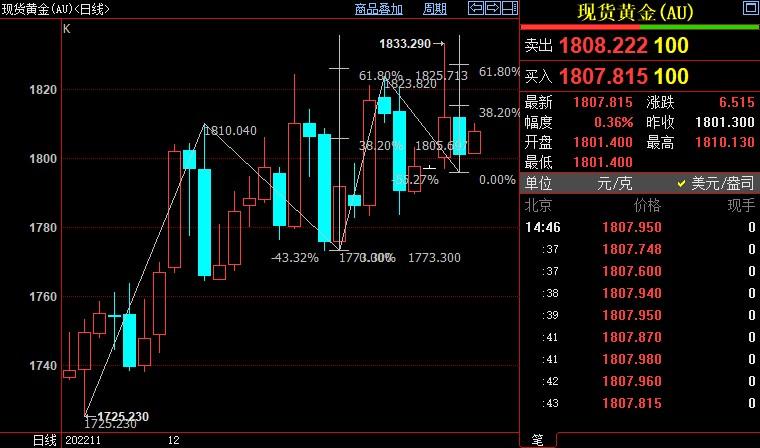 现货黄金短线上看1827美元