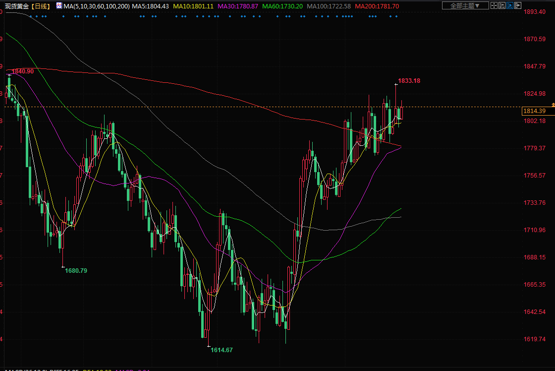 现货金也势将迎来近9.5%的季度涨幅,从9月创下的两年多低位回升了近200美元,人们希望美联储放缓加息步伐。现货白银上涨1.8%,至每盎司23.94美元。铂金上涨4.6%,至1054.32美元,钯金上涨1.7%,至1814.75美元。