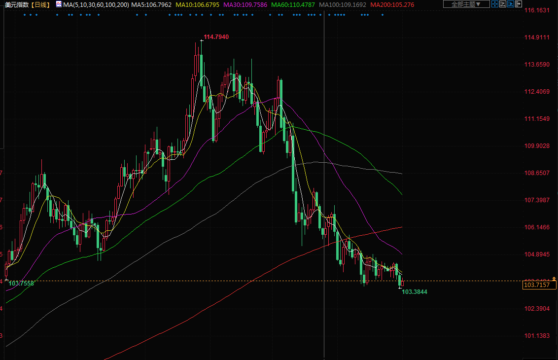 由于市场押注美联储的紧缩周期可能接近尾声,且市场情绪仍然脆弱,近期美元指数走弱。德商银行外汇研究主管Ulrich?Leuchtmann表示,今日美元指数试图走高,但市场也确实看到,美元正在失去其去年获得的很大一部分强劲上涨的动力。在上次美联储会议后,市场预期美联储不会不在2023年晚些时候降息。预计今年将会是有趣的一年。