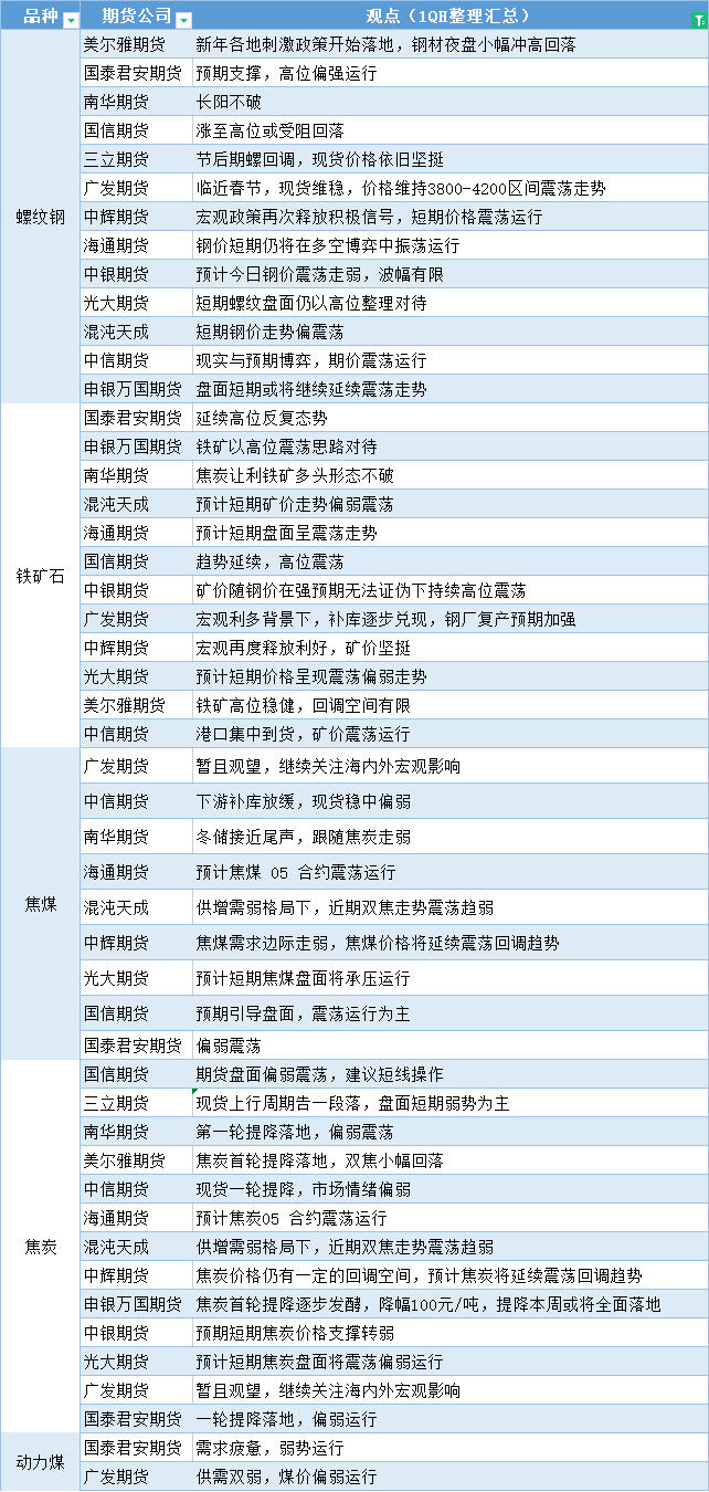 期货公司观点汇总一张图:1月4日黑色系(螺纹钢、焦煤、焦炭、铁矿石、动力煤等) Posted on Jan 04, 2023 Jan 04, 2023 汇通财经APP讯——期货公司观点汇总一张图:1月4日黑色系(螺纹钢、焦煤、焦炭、铁矿石、动力煤等) 标题: 期货公司观点汇总一张图:1月4日黑色系(螺纹钢、焦煤、焦炭、铁矿石、动力煤等) 地址: jnwq0531.cn/article/1378.html