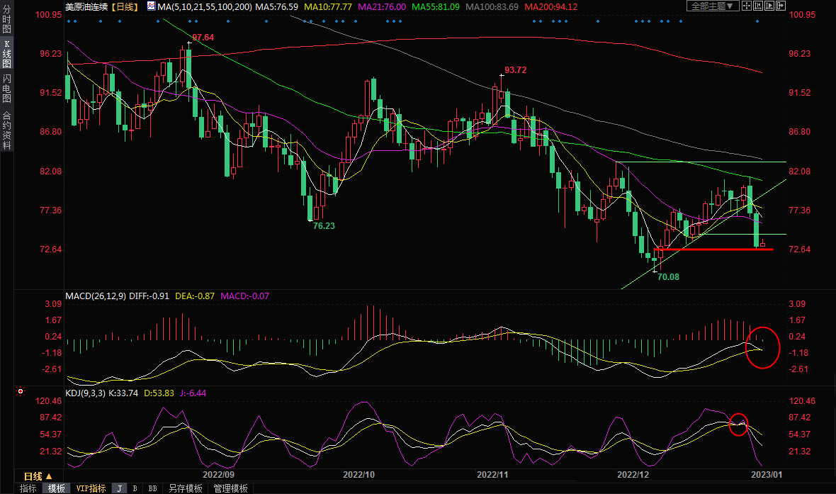 汇通财经APP讯——周四(1月5日)亚洲时段,美原油小幅反弹,目前交投于73.77美元/桶附近,虽然亚洲股市反弹和油价短线超跌反弹需求在短线支撑油价,但对全球经济衰退担忧和亚洲疫情担忧的背景下,12月份OPEC产量增加、沙特可能在2月份下调亚洲原油售价、API原油库存增幅超过预期、美国制造业萎缩等因素打压油价,预计后市仍有一定的下行空间。