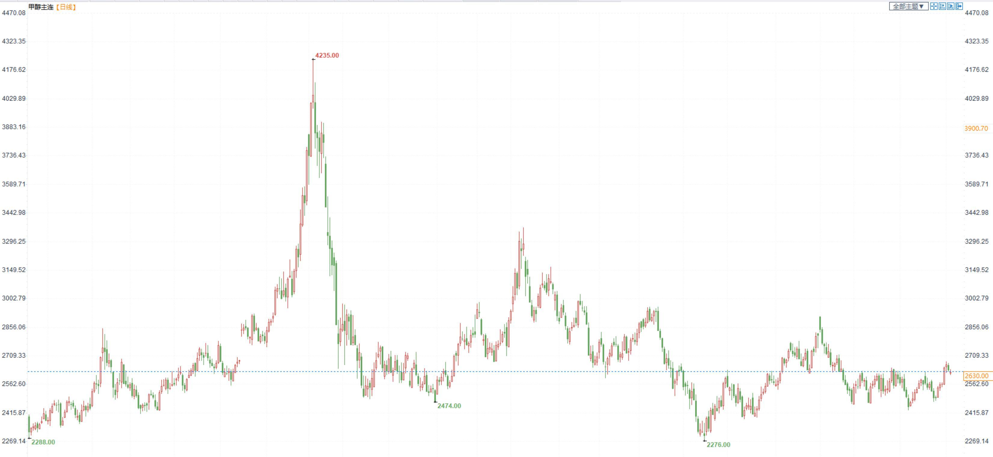 期货市场,甲醇2305合约小幅收跌,收盘价2611。现货端,港口库存低,目前现货依旧强势于期货。