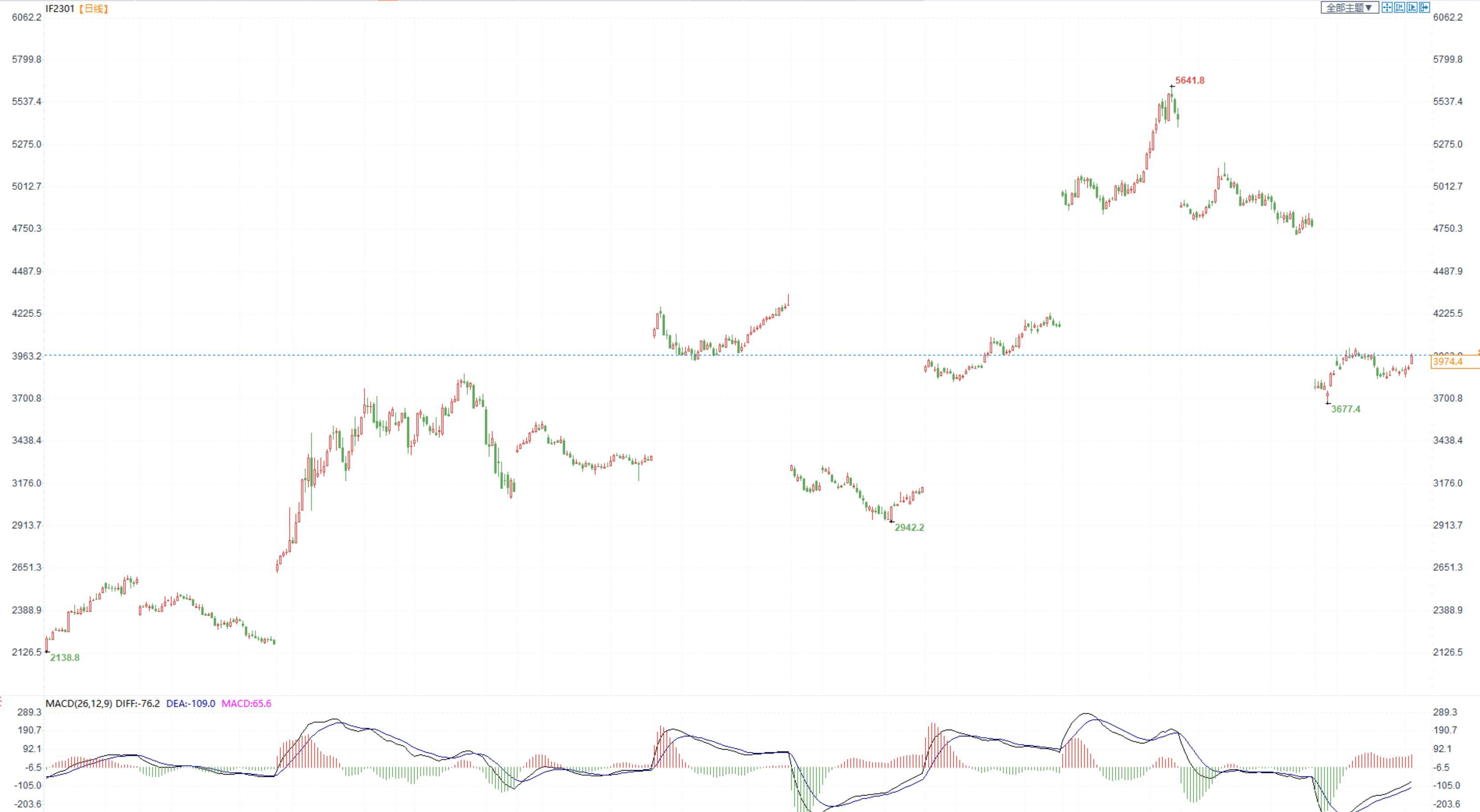 【今日涨跌】四大期指全线收涨。IH2301收盘价为2705.6,收涨1.99%;IF2301收盘价为3974.4,收涨2.04%;IC2301收盘价为6019.4,收涨1.13%;IM2301收盘价为6490.4,收涨1.32%。