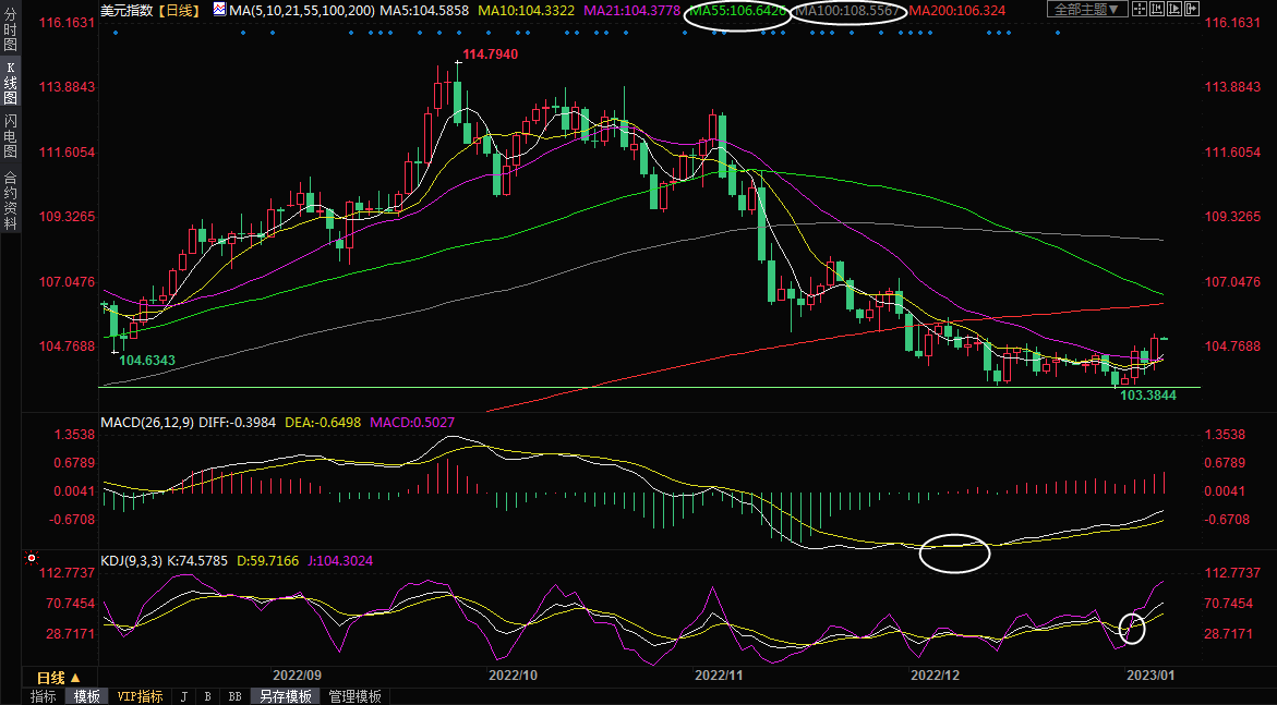 技术面显示,美元指数在逾半年低点103.38附近初步筑底成功,短线有望迎来一波上涨行情,初步目标看向55日均线105.64附近,激进目标甚至可以看向100日均线108.55附近。
