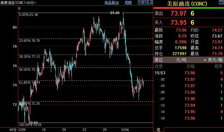 北京时间15:54,NYMEX原油期货上浮0.41%至73.97美元/桶;ICE布伦特原油期货上浮0.37%至78.98美元/桶。