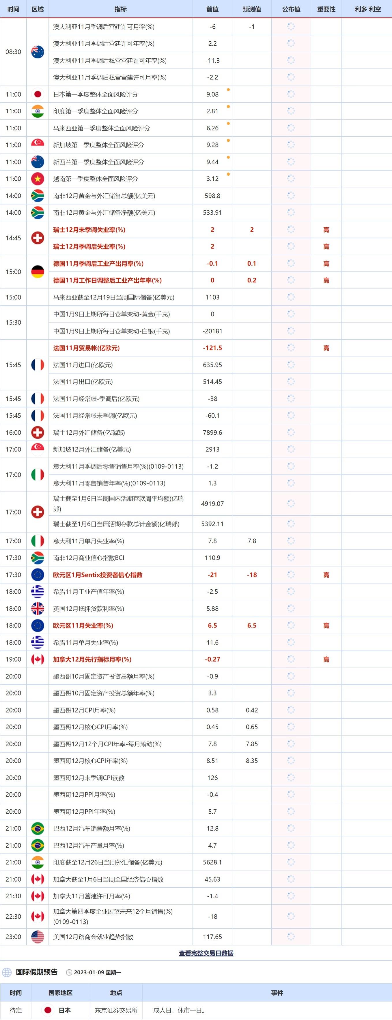 汇通财经APP讯——1月9日(周一),投资者需关注的重点数据:德国11月季调后工业产出月率,德国11月工作日调整后工业产出年率,法国11月贸易帐,欧元区1月Sentix投资者信心指数和欧元区11月失业率。需关注的大事件:英国央行首席经济学家皮尔发表讲话;日本东京证券交易所因成人日,休市一日。