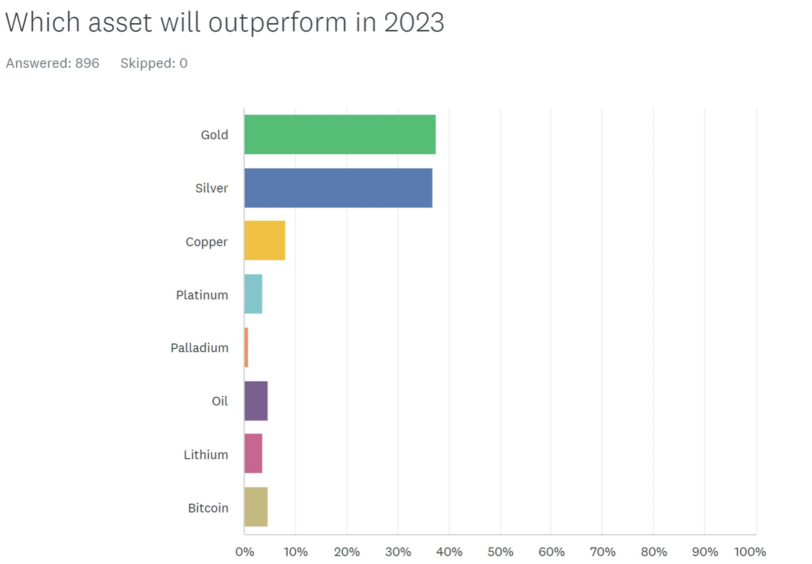 Kitco的调查结果显示,受访者认为,黄金和白银将成为2023年表现最佳的前两位投资品种。
