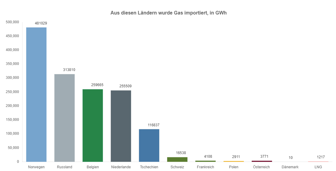 德国联邦网络局具体数据显示,德国2022年的天然气进口量为1449太瓦时(1太瓦时=10亿度),2021年为1652太瓦时,减少了12.3%。