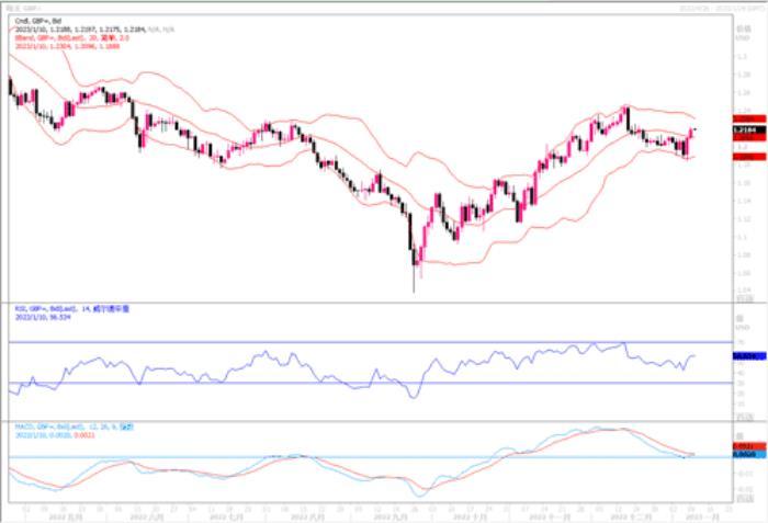 周一(1月9日)英镑兑全线疲软的美元创下两周半新高,当日英镑兑美元上涨0.3%,报1.2123美元,盘中稍早触及2022年12月21日以来的最高水平1.2174美元。自上周五以来,英镑兑美元的大部分走势都是由美元驱动的,主要是由美国ISM服务业数据陷入萎缩引发的。英国央行总裁贝利将在周二主持一场小组讨论,这是需要投资者关注的一件大事。目前,在美国非农就业和薪资数据公布后,市场上的风险偏好升温,美国经济有可能软着陆,美联储可能减缓加息步伐的炒作因素在促使非美货币的回升。从日线图上看,英镑/美元谨慎上涨至1.2129,高于21日均线切入位1.2112周一收于该阻力位之上,对未来进一步上涨很关键,多头的目标是上升趋势通道的入口1.2222,进一步目标将是再度冲击上年12月中旬到达过的高位1.2450附近。而下方比较牢固的支撑区域则在1.18-1.19区域。