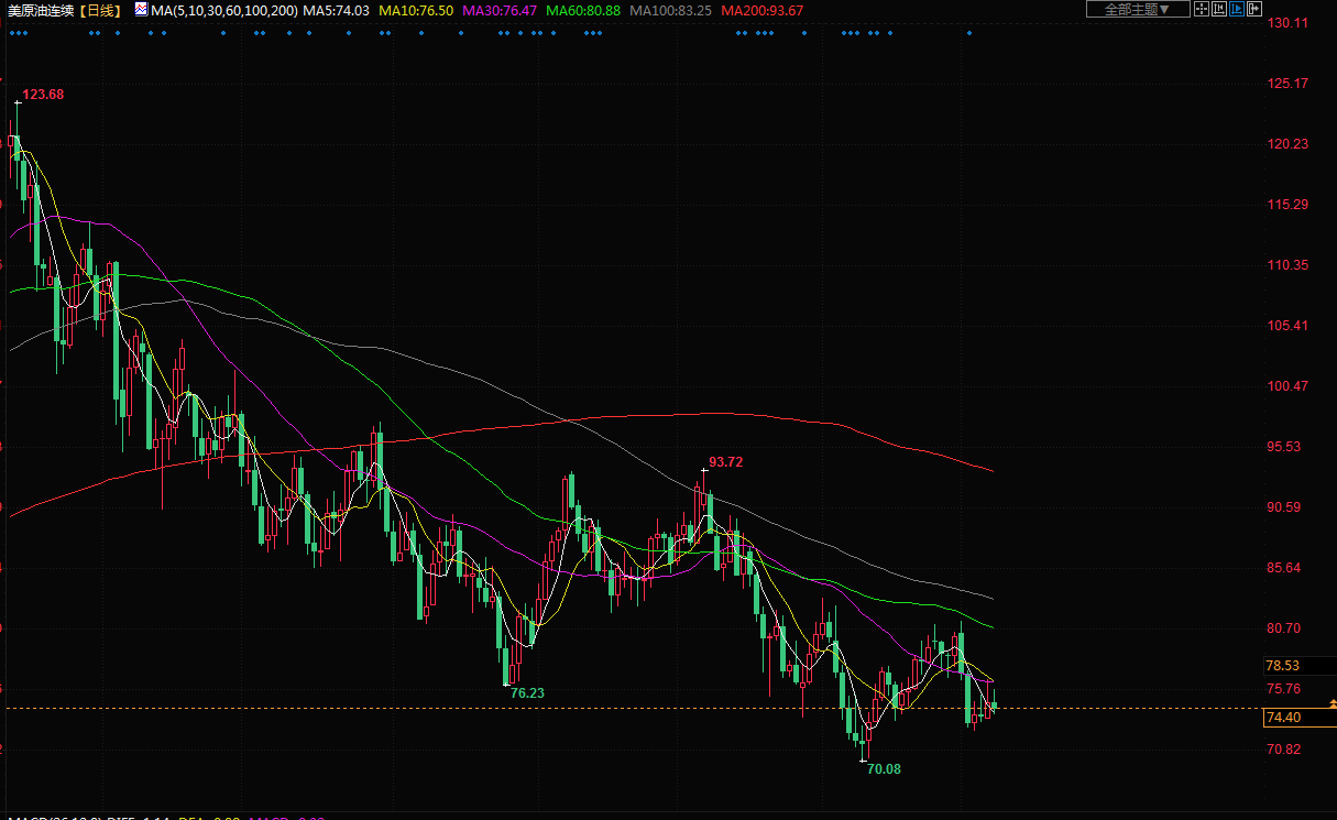 商品收盘情况:布伦特原油期货上涨0.6%,报收每桶80.10美元,而美国原油期货收报每桶75.12美元,上涨或0.6%。美国期金收低0.1%,结算价报1876.5美元。
