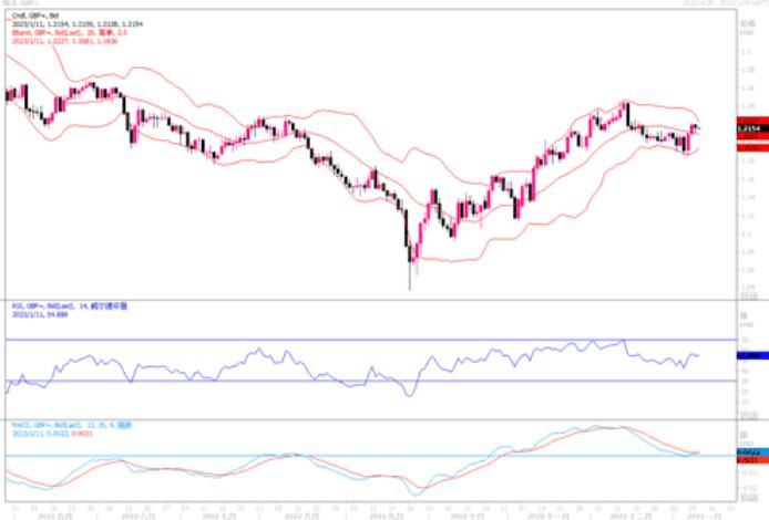 周二(1月10日)在美国公布CPI消费物价指数之前,市场交投较为谨慎,美元兑日元当日略有回升0.28%,收盘于132.25。目前越来越多的观点认为,日本央行本月货币政策会议上将上调物价上涨率预期。投资者预测大规模货币政策面临进一步调整,意识到日美利差将缩小,令抛售美元兑日元的动向增强。若本周四美国消费物价数据呈下滑,则可能大概率加剧美元兑日元的下滑态势。技术层面上,日图整体维持下行走势,在MA20受阻回落后弱势震荡,仍偏下行。4小时图在132.65-131.30区间震荡,仍倾向下行突破。且整体上,美元兑日元都处在布林带通道下轨,整个下行通道保持完好,上方135之下似乎形成了短期的双顶,只要震荡整理回不到该水平之上,则交易节奏逢高空美元似乎更受市场欢迎。