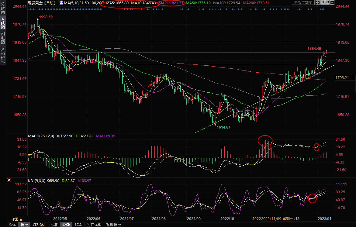 汇通财经APP讯——周三(1月11日)亚洲时段,现货黄金小幅冲高,一度创5月9日以来新高至1884.49美元/盎司,虽然市场普遍关注周四将出炉的美国12月CPI数据,交投情绪比较谨慎,但美联储主席鲍威尔讲话后美元维持弱势,市场普遍预计美国CPI数据将显示通胀增速放缓,这将迫使美联储进一步放缓加息步伐,给金价提供上涨动能。若金价能够站稳在6月份高点1878.65上方,则后市有望进一步涨向1920关口附近,4月29日高点阻力也在该位置附近。