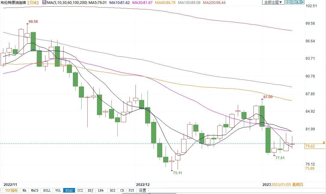 北京时间1月11日13:22,布伦特原油主力合约价格报79.34美元/桶。