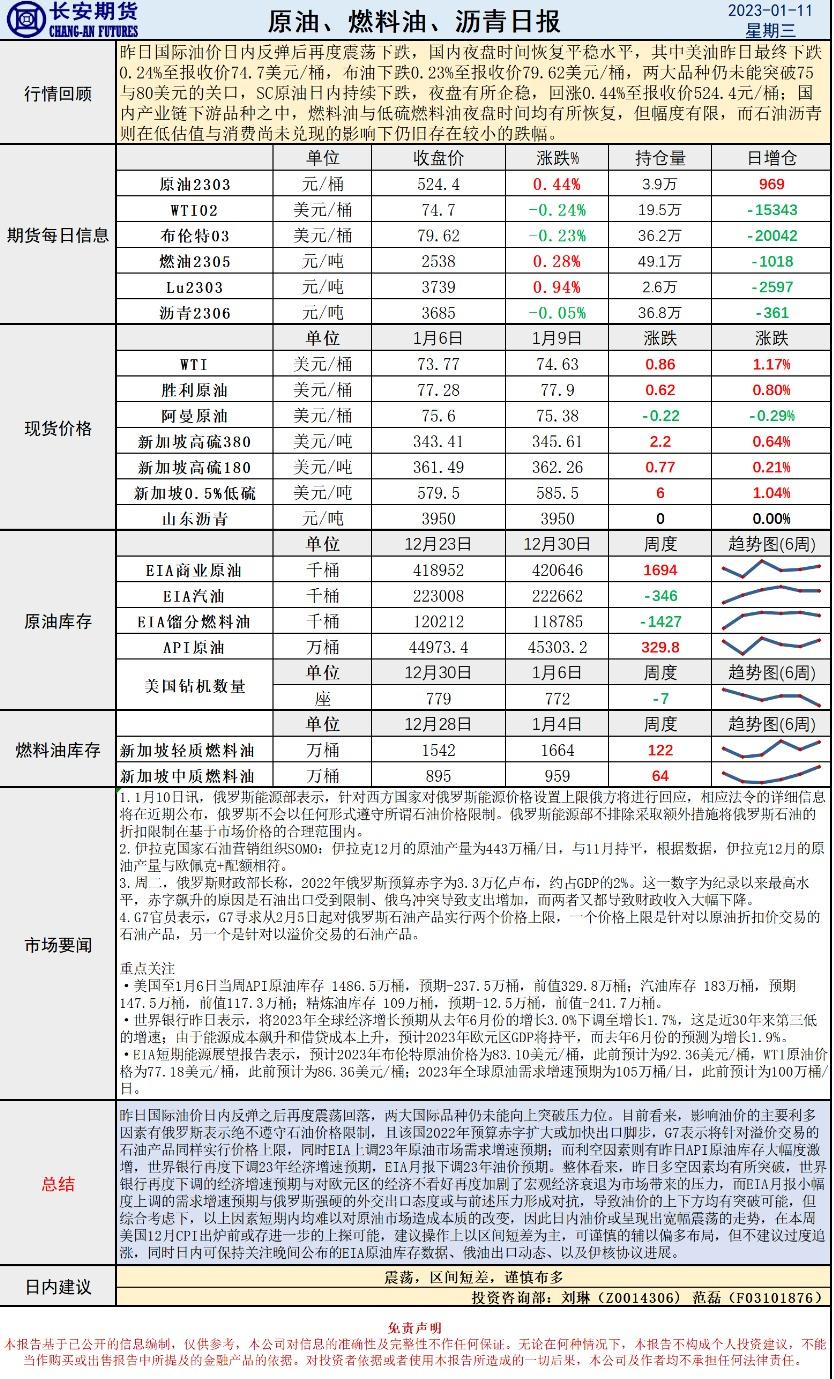 汇通财经APP讯——1月11日,长安期货发布原油早评,认为原油将震荡,建议区间短差,谨慎布多。