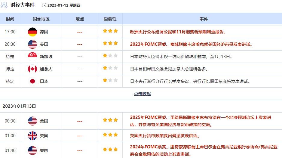 波士顿联储主席柯林斯明确地表示倾向于2月份加息25个基点。柯林斯表示,“我认为加息25或50个基点是合理的;现阶段,我倾向于25基点,但这主要看数据。随着我们接近将加息至维持不变的水平,慢慢调整会让我们在每一次决策前有更多时间评估即将到来的数据。缩小调整幅度给我们提供了更大的灵活性。”柯林斯表示,她倾向于今年将利率提高至略高于5%的水平,可能会在2月、3月和5月三次加息25个基点,然后维持到2023年底。柯林斯非今年票委,但在做出决定时,她将参与审议。