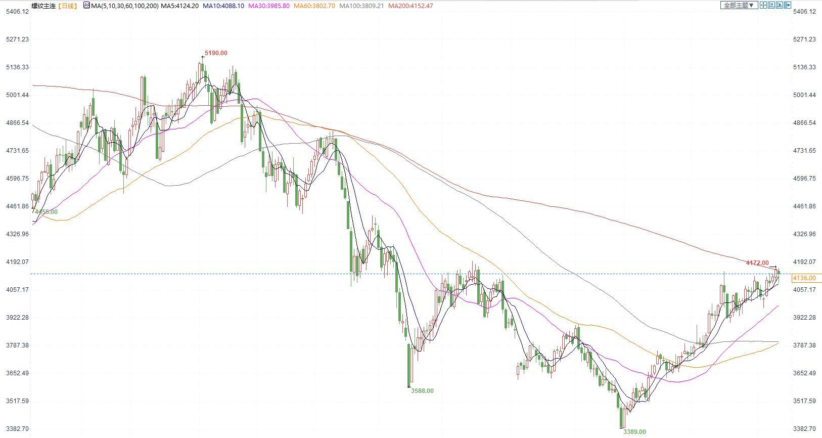价格:螺纹钢今日震荡运行,收盘价4136元/吨,较昨日结算价环比持平。上海中天现货价4140元/吨,较昨日持稳。