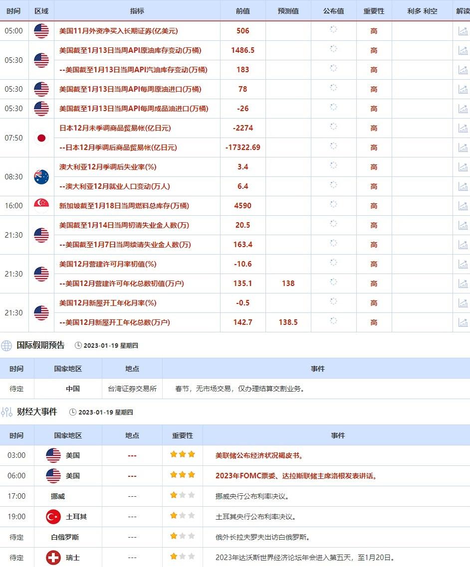 1月19日,2023年达沃斯世界经济论坛年会进入第五天,投资者需继续关注相关官员的讲话。