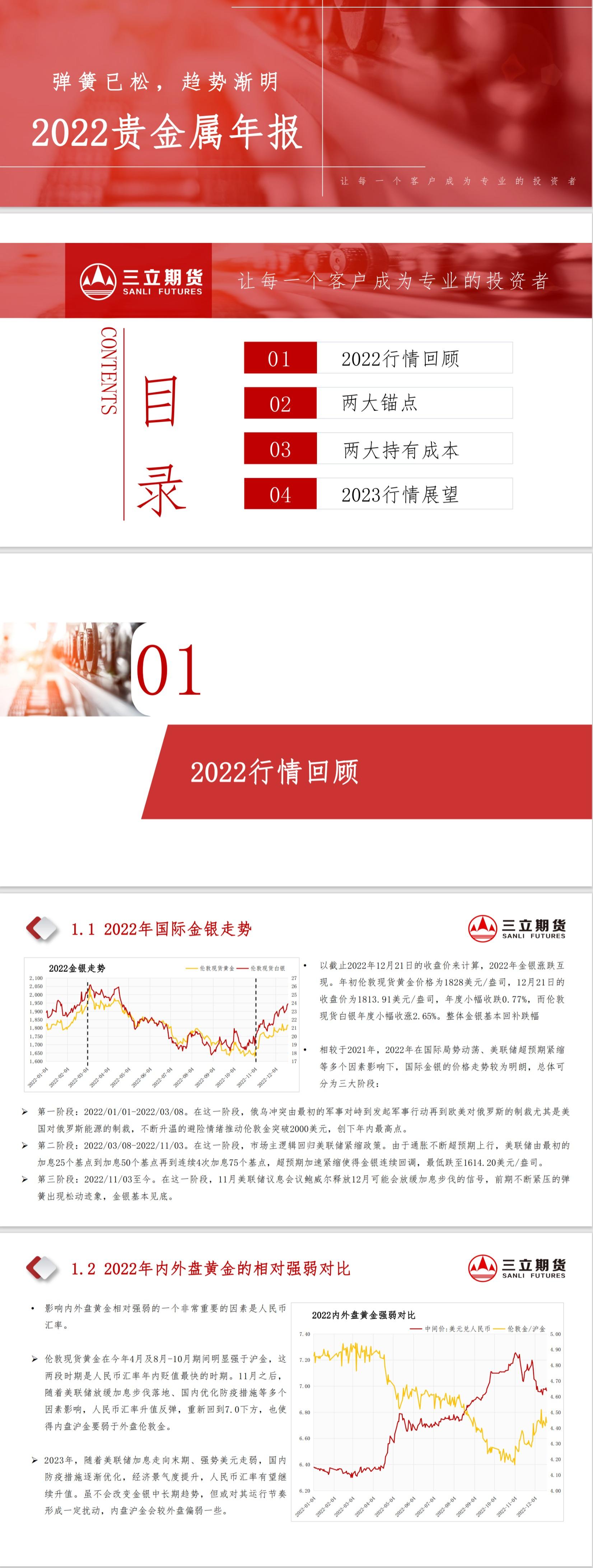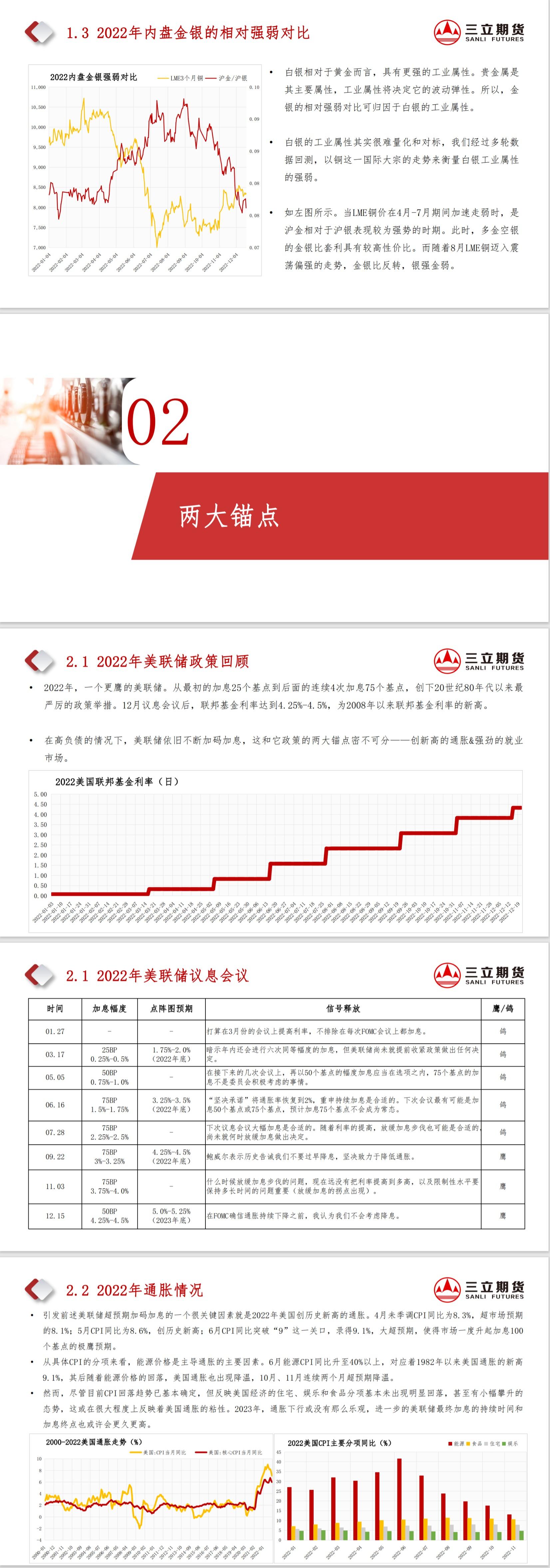汇通财经APP讯——从年度视角来看,美联储放缓加息拐点已现,前期紧压的弹簧在逐渐放松,压在金银上方最大的石头也在慢慢松动,预计2023年金银将整体以上行为主。