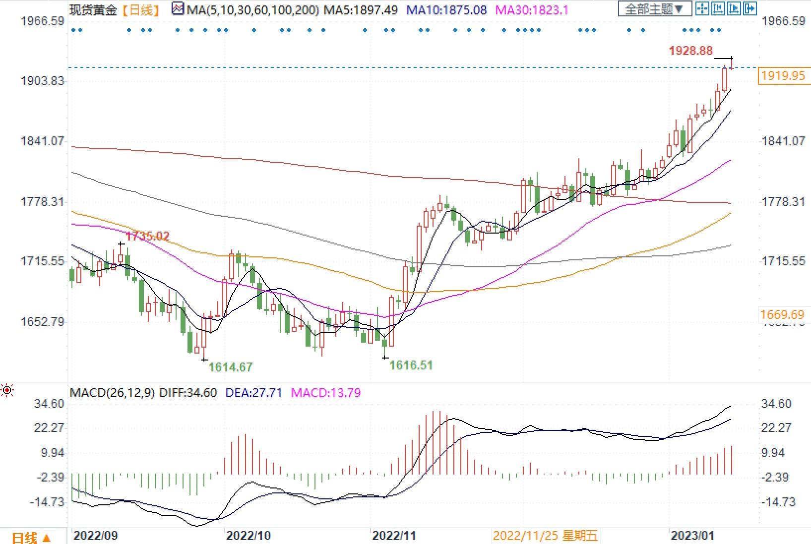 自2023年年初以来,金价实际上上涨了近5%,虽然2023年才刚刚开始,但市场上的看涨情绪几乎是显而易见的。金价刚刚突破每盎司1900美元,但一些投资者和分析师已经将目标锁定在2000美元。