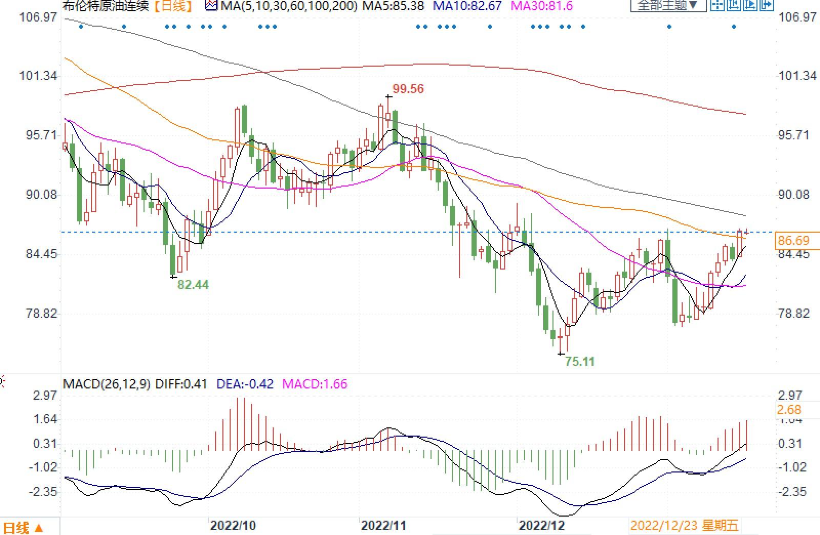 北京时间1月18日13:33,布伦特原油连续报86.69美元/桶